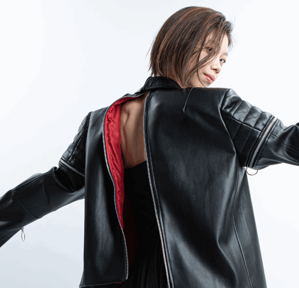 前から袖を通し、背中でジッパーを閉じるライダースジャケット。着る人にとっては、腕を通しやすく、負担が少ない設計。介助する人にとっては、自然な姿勢のままスムーズに着せられる。どちらにとっても心地よい、新しいスタイルです。